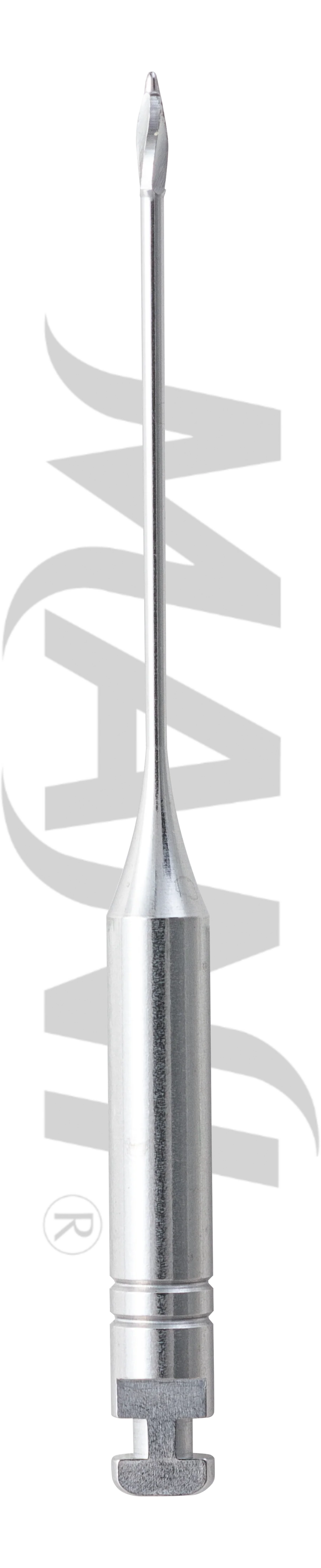 Designed with a flame-shaped boring head with a non-cutting guide tip on a slender shaft. Used to reduce the curvature in the orifice of the canal, allowing greater access to the canal for cleaning and obturation.